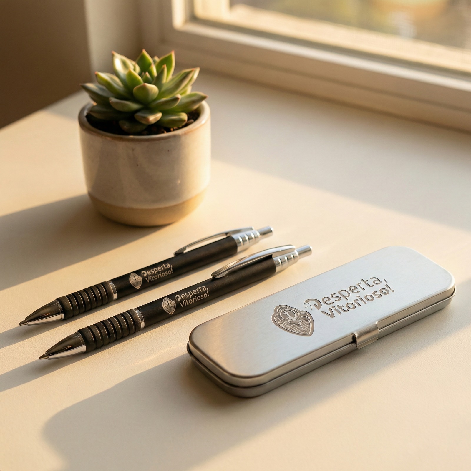O Conjunto de Caneta e Lapiseira Desperta Vitorioso foi pensado para completar o seu material de estudo com mais organização e qualidade.